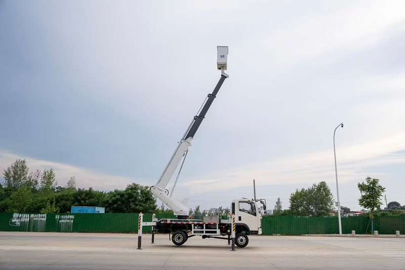 重汽豪沃17 5米高空車,出口到尼泊爾,旋轉機構后置,1 1米玻璃鋼吊蘭,十八邊形同步伸縮臂,360度連續回轉,前V后V型液壓支腿,單 ...